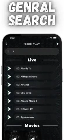 بفضل مشغل IPTV المتطور، وواجهة المستخدم البسيطة، والتحكمات المتقدمة لقوائم m3u، يمكنك الاستمتاع بعروضك التلفزيونية، أفلامك، الرياضة، وكل ما تحب بسهولة وذكاء. خصوصًا وأن Code Play يدعم جميع دقّات الشاشة بما في ذلك 4K.